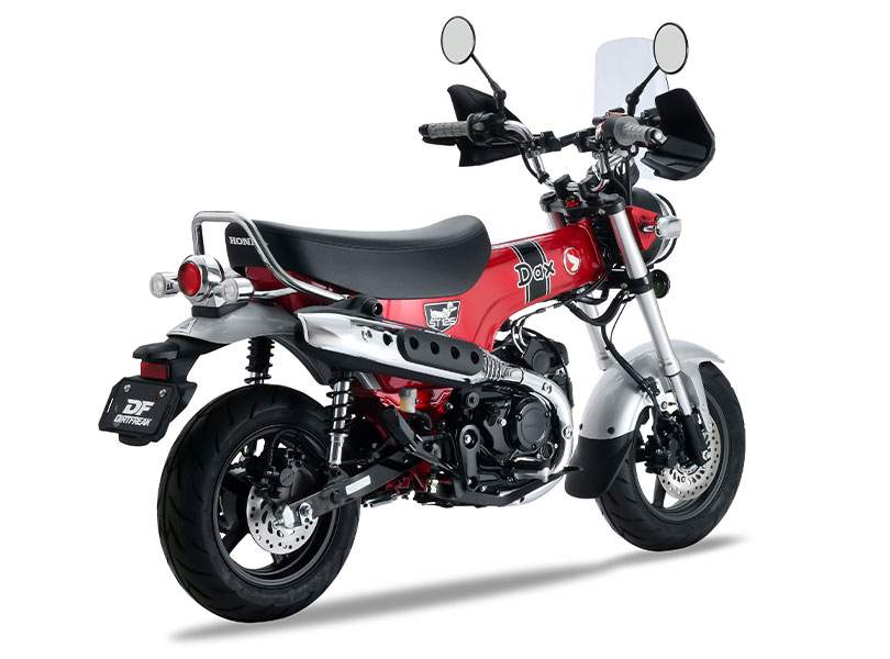 DAX125専用設計のアドベンチャーハンドガードと、防風効果の高いスクードプロテクターの組合せ。 -