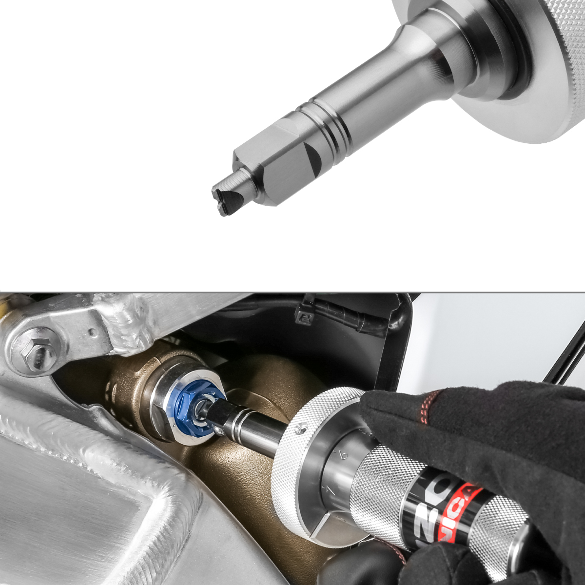 With an extension attached, the tool can reach adjusters located in hard-to-reach areas of the bike. -