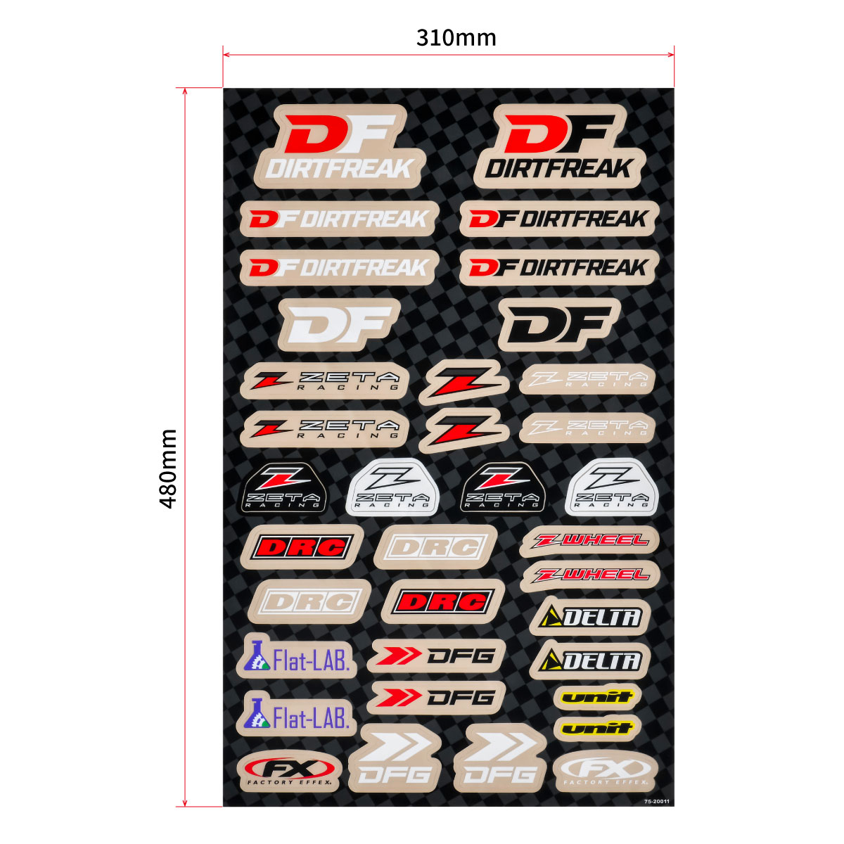 シュラウド・フェンダー・スイングアームなど、場所を問わず貼ることができるステッカーキット。サイズ:縦x横:48×31cm