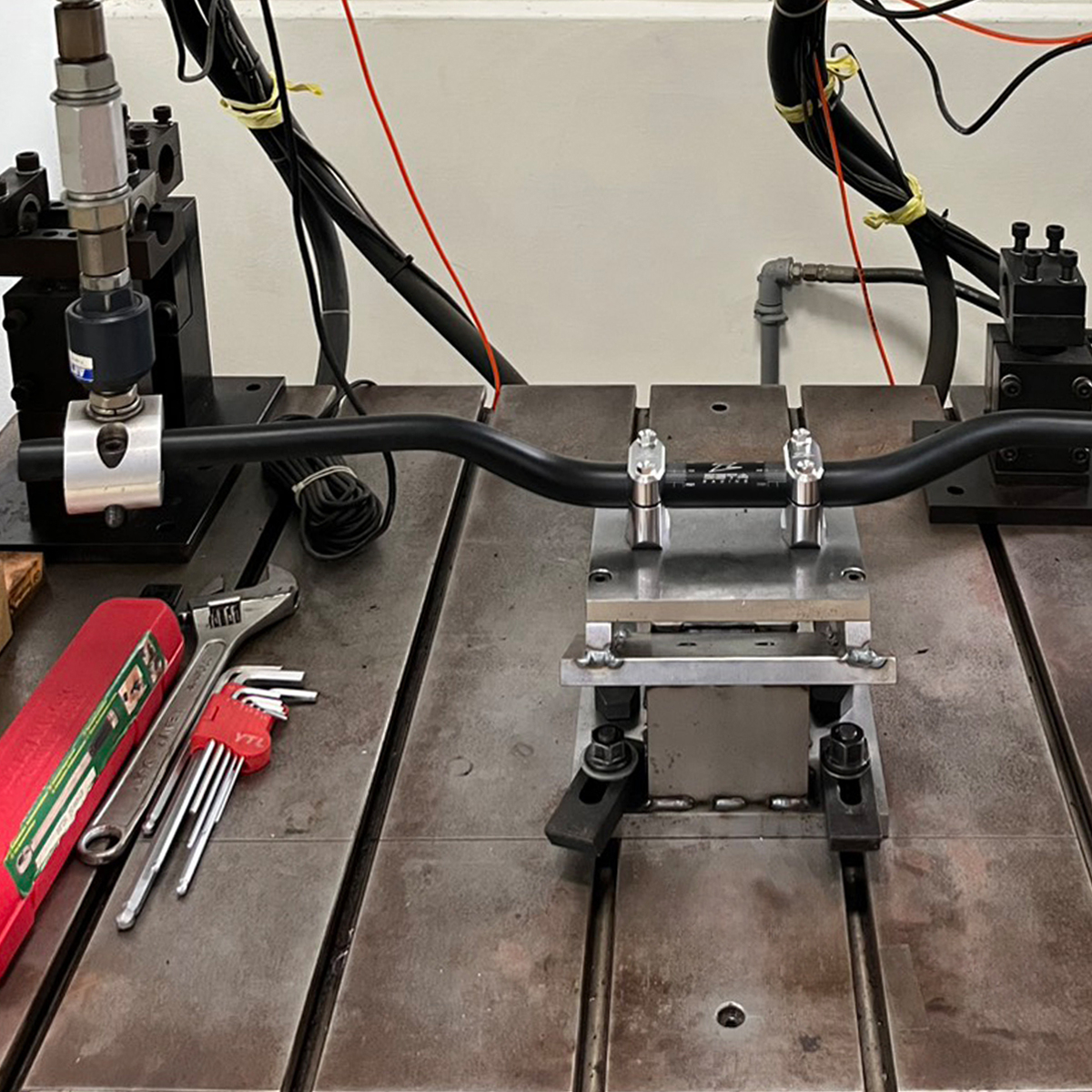 7000系高強度アルミニウム合金を使用し、ハンドルクランプ部分を大径化(28.6mm)することで、転倒時の破損リスクを大幅に低減。 -