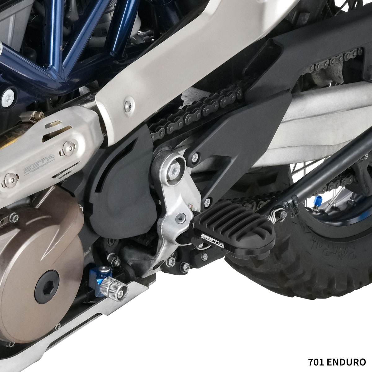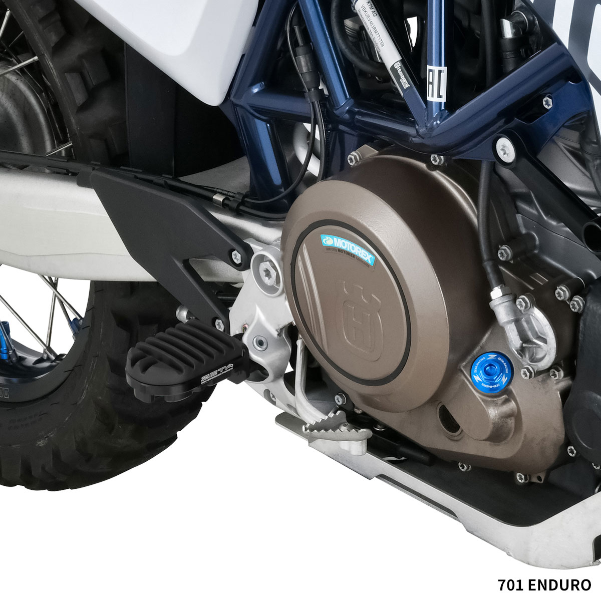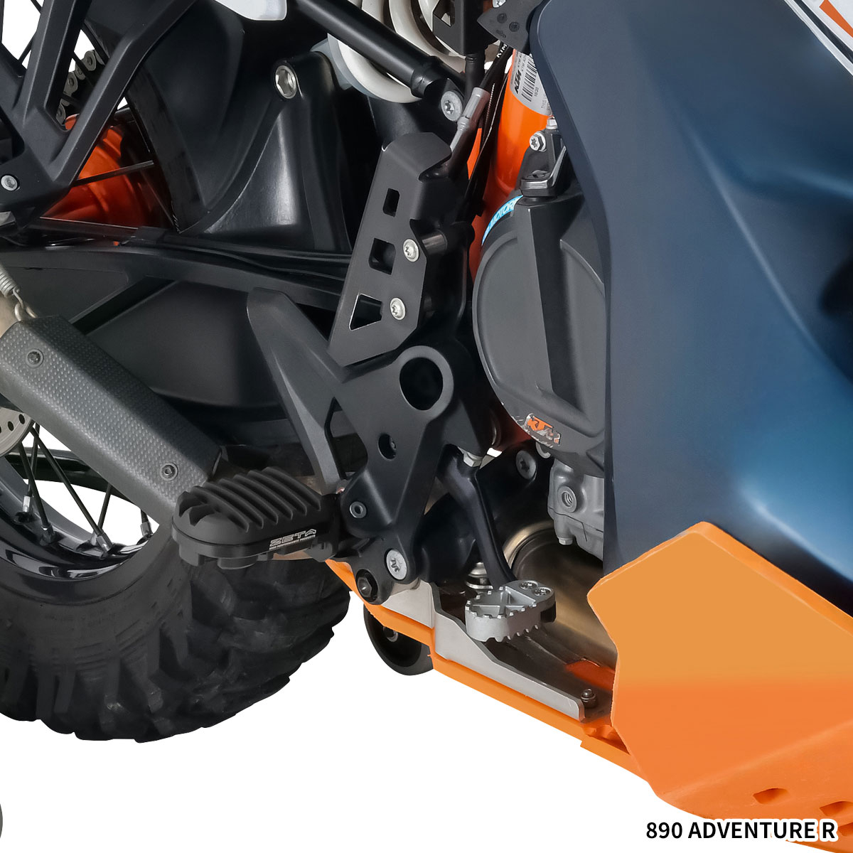 ロングツーリングから林道まで、シーンを選ばずマルチに使えるアドベンチャーフットペグ。ツーリング先の林道でも、ゴムカバーとステンレスブレードを、工具なしで簡単に切替可能。- 重量:約485g(片側)