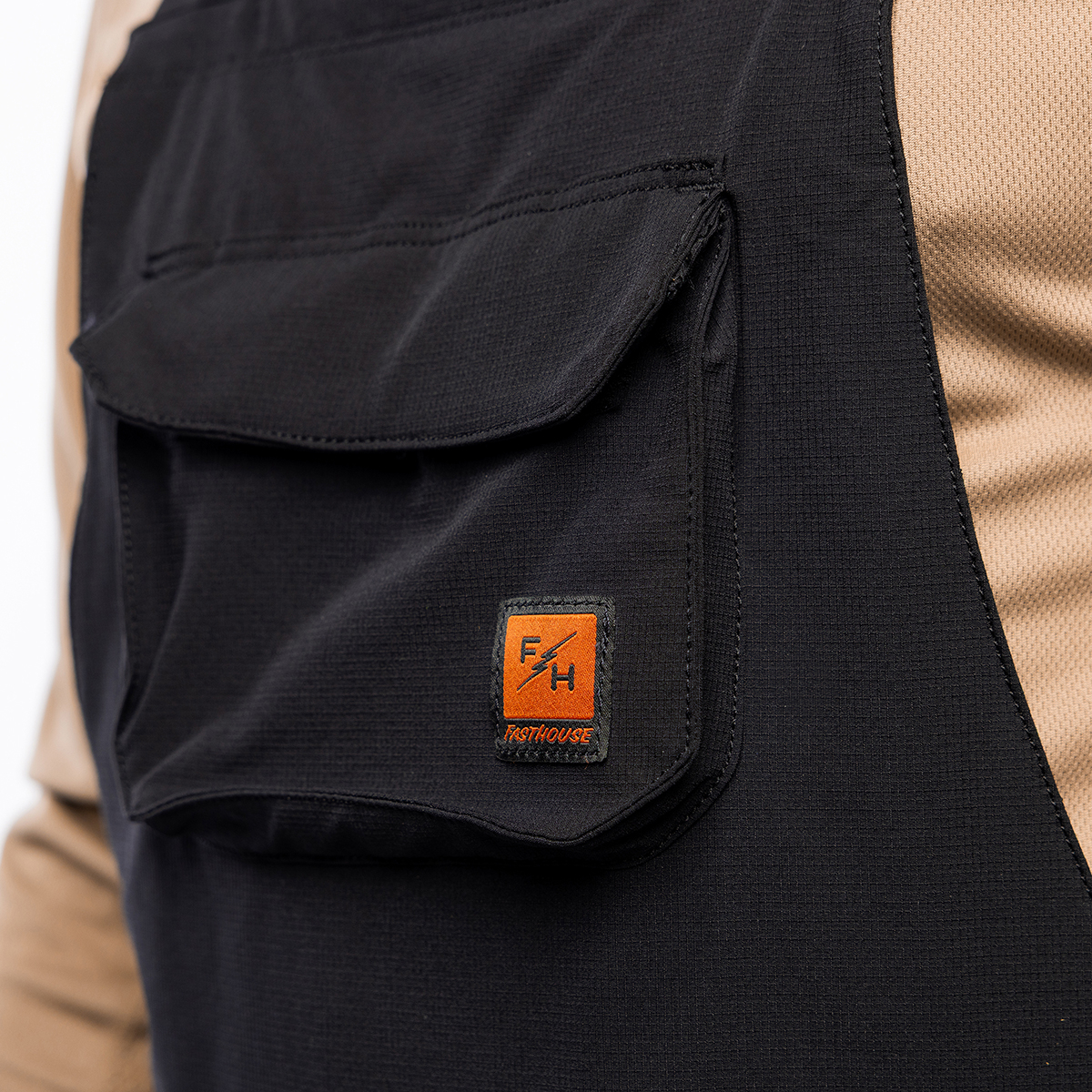 *胸部と太ももにベルクロ付きカーゴポケットを装備。