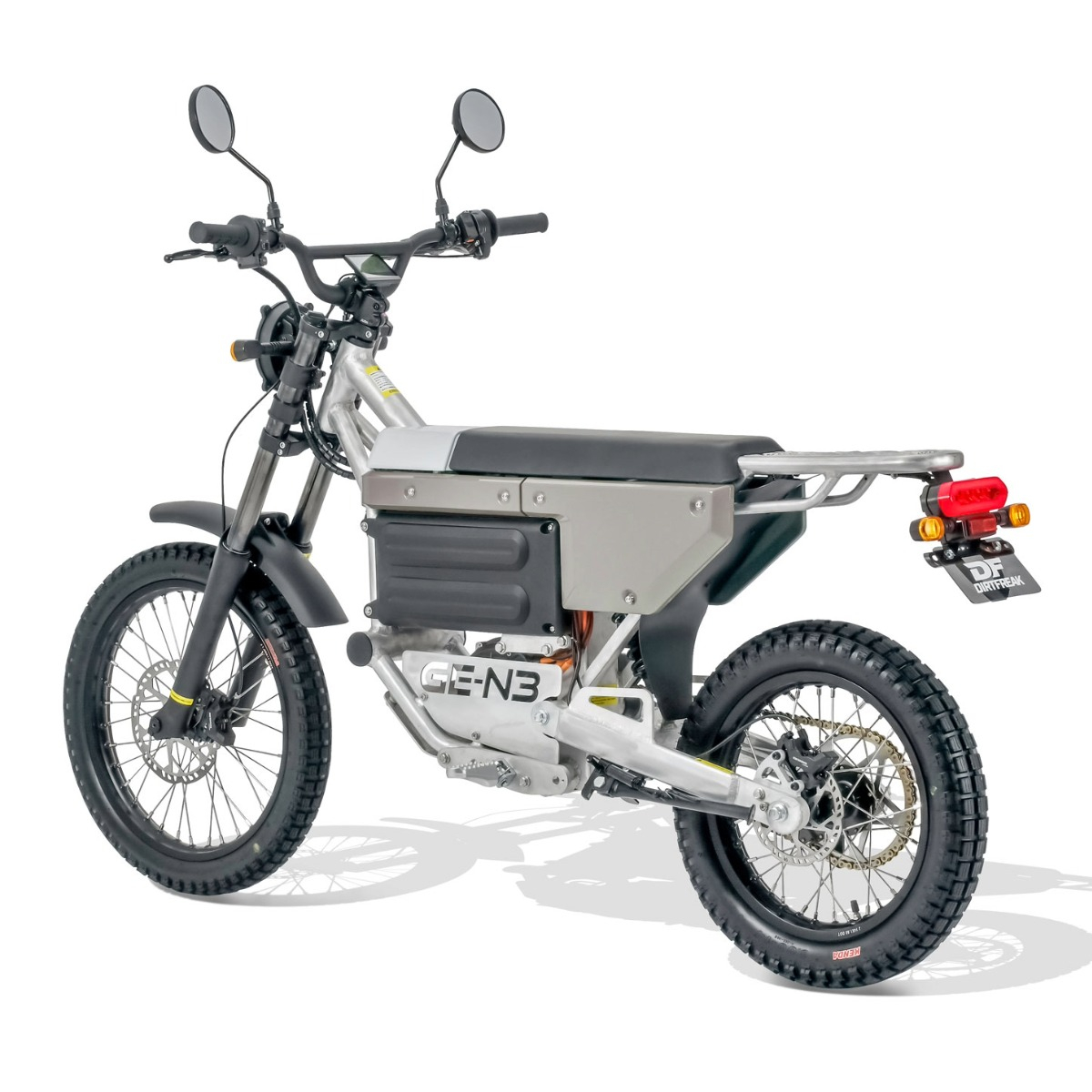 ダートフリークが提案する、新しい電動原付オフローダー。水平垂直基調のツールライクなシルエット。軽くコンパクトなボディ。シティコミューターにふさわしい、平和で優しいデザインに仕立てました。ゆっくりトコトコ。静かで穏やか。そして、細部に宿るオフロードバイクのエッセンス。操る歓びがギュっと詰まったこのバイクを、ぜひ、色んな道に連れ出してあげてください。
