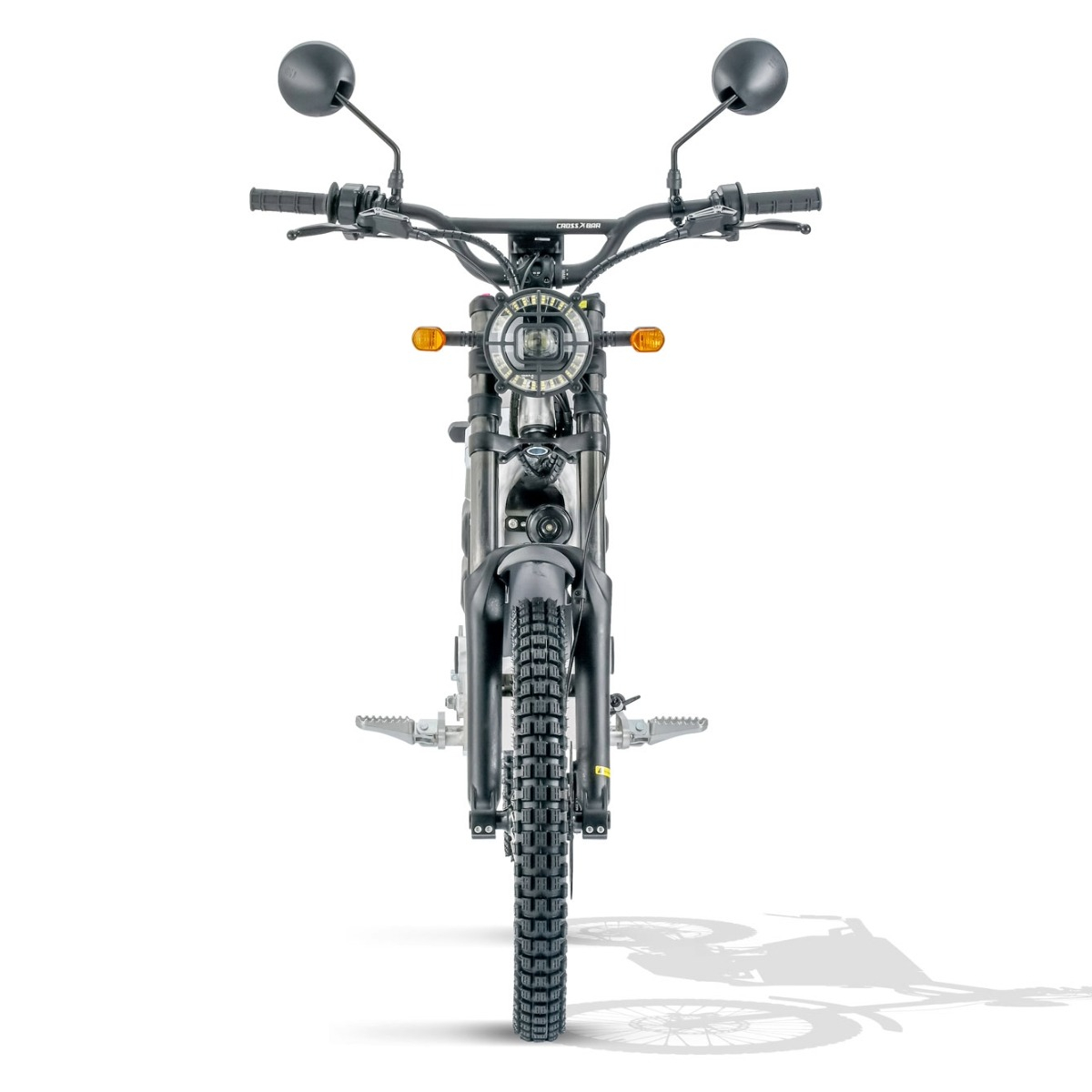 原付1種クラスとしては異例の72Vバッテリーと高トルク低回転型の専用モーターの組み合わせにより、後輪軸出力は最大で230Nm。電動バイク特有の低速時の力強さがオフロード走行で威力を発揮します。 -