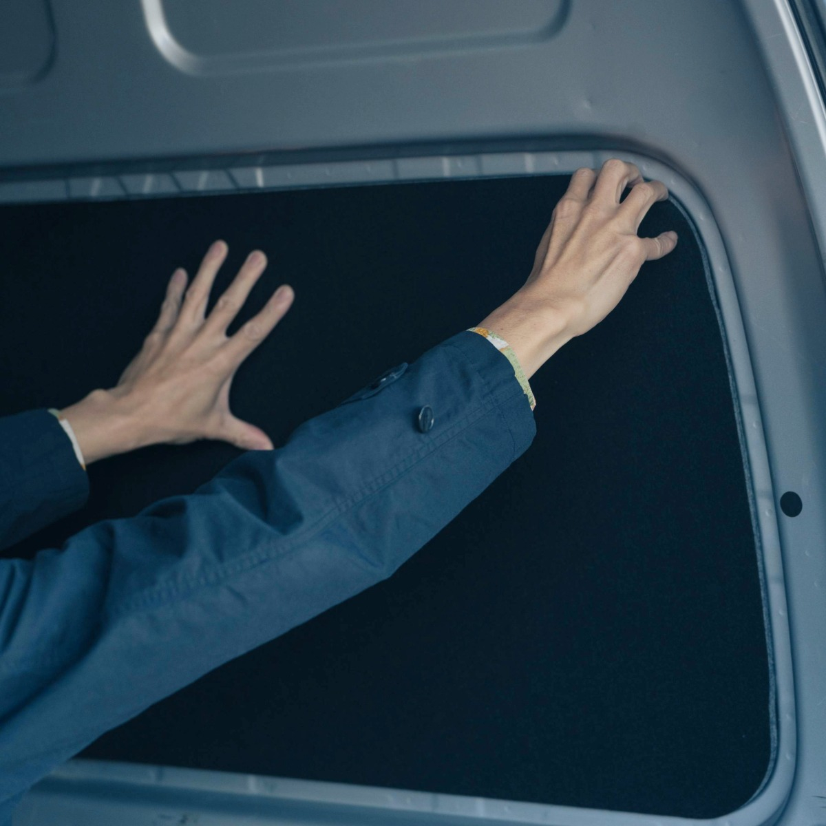 他には無い高い「断熱性」と「防音性」を備え、快適な車内空間を提供するシェード。精度高く窓枠に沿い切り抜いたシェードをはめ込むシンプルスタイル。