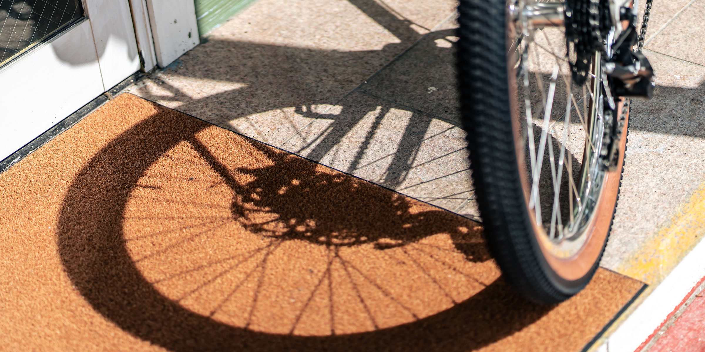細身のスチールフレームは、街角に立てかけても絵になるクラシックな雰囲気。