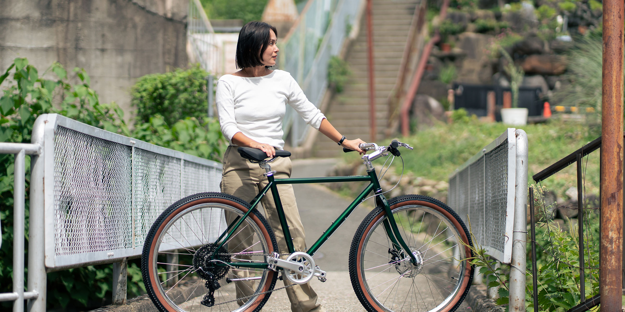 アスファルトも砂利道も、このタイヤ一本でOK。空気容量が大きくクッション性に優れた 2.1 インチ幅が路面の細かな振動を吸収してくれるため、手や腰に優しい乗り味に。“ちょっと寄り道したくなる”自由度の高い走りです。 -