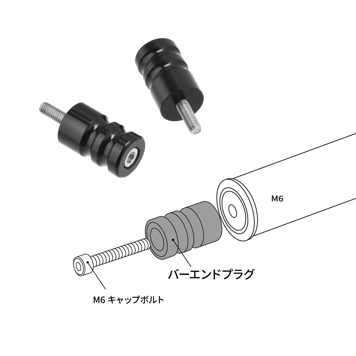 ※バーエンドがM6タイプの車両でも、ホンダ車に採用されているナットが動いてしまうタイプのバーエンドには取付けできません。